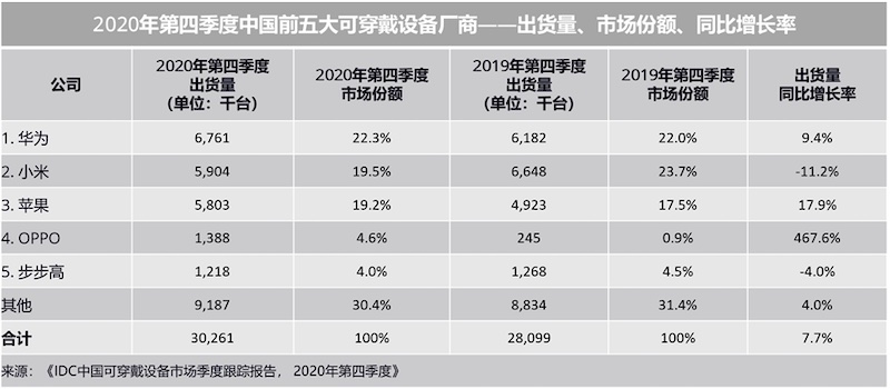 IDC《我国可穿戴设备商场季度盯梢陈述,2020 年第四季度》显现
